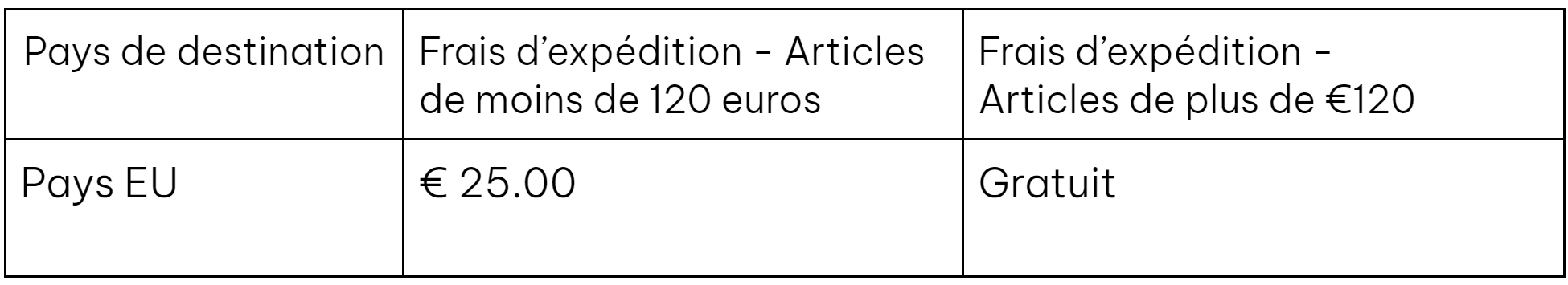 Nous sommes en mesure de livrer des marchandises aux destinations suivantes, qui seront soumises aux frais de livraison suivants :